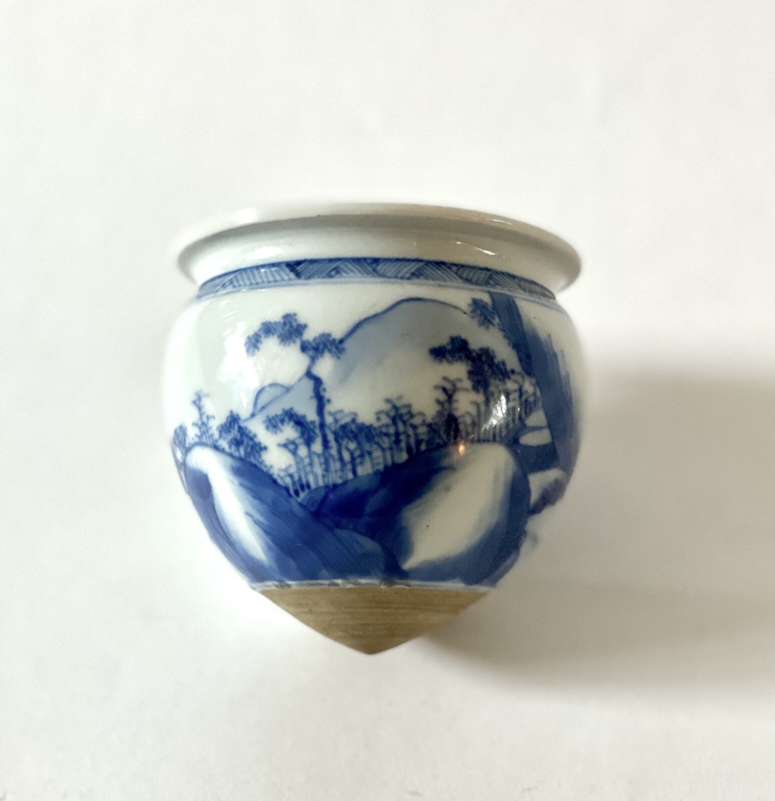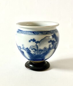 清康熙 青花山水河景杯碟一對 《美玉雅製》款