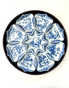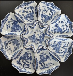 During the late Ming dynasty such dishes were produced in China for the Japanese market, mainly in the Tianqi an Chongzhen periods (1620-1644), often in sets of five.