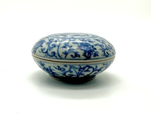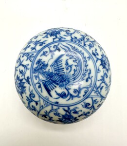 BPU 02 明崇禎 「哈察船貨」青花鳳凰紋圓蓋盒